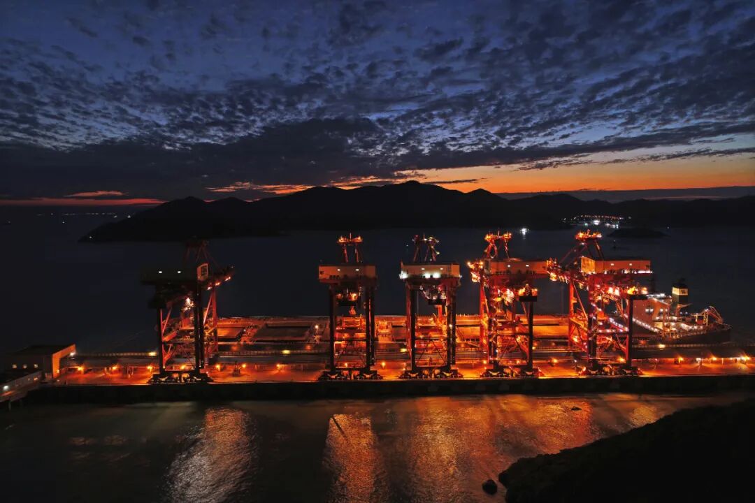 夜幕下的港口今夜无眠,海港人奋战正酣。